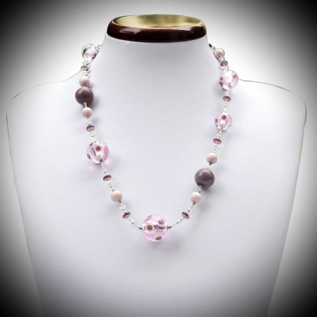 A true Murano jewel, this delicate necklace showcases the excellence of traditional Italian glassmaking. Handcrafted by master artisans, it gracefully combines the timeless beauty of blown glass with soft, luminous colors.